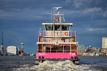 Die Schiffe Neuland, Finkenwerder und Grasbrook sind unsere ersten Hybrid-Schiffe und haben einen Plug-In Hybrid Antrieb. Gebaut wurden sie 2024 und 2025 bei der Schiff- und Entwicklungsgesellschaft Tangermünde.